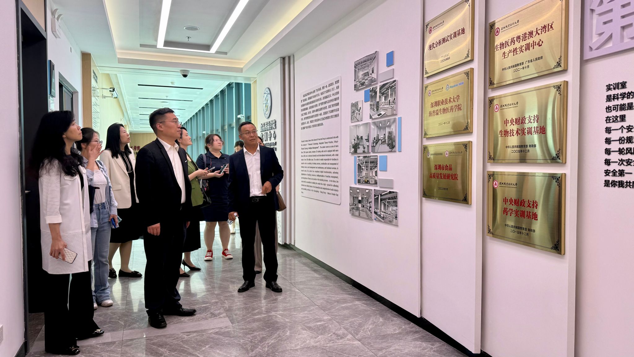 调研组一行先后参观了华为ICT学院、比亚迪应用技术学院、食品药品学院产学研创实训中心,详细了解学校在产教融合、人才培养、实训平台建设等方面的实践与成效。在食品药品学院产学研创实训中心,调研组重点考察了药学专业在药品生产、质量检测、仿真实训等环节的教学与科研设施,对学校紧密对接生物医药产业发展需求、强化学生实践能力培养的做法给予充分肯定。