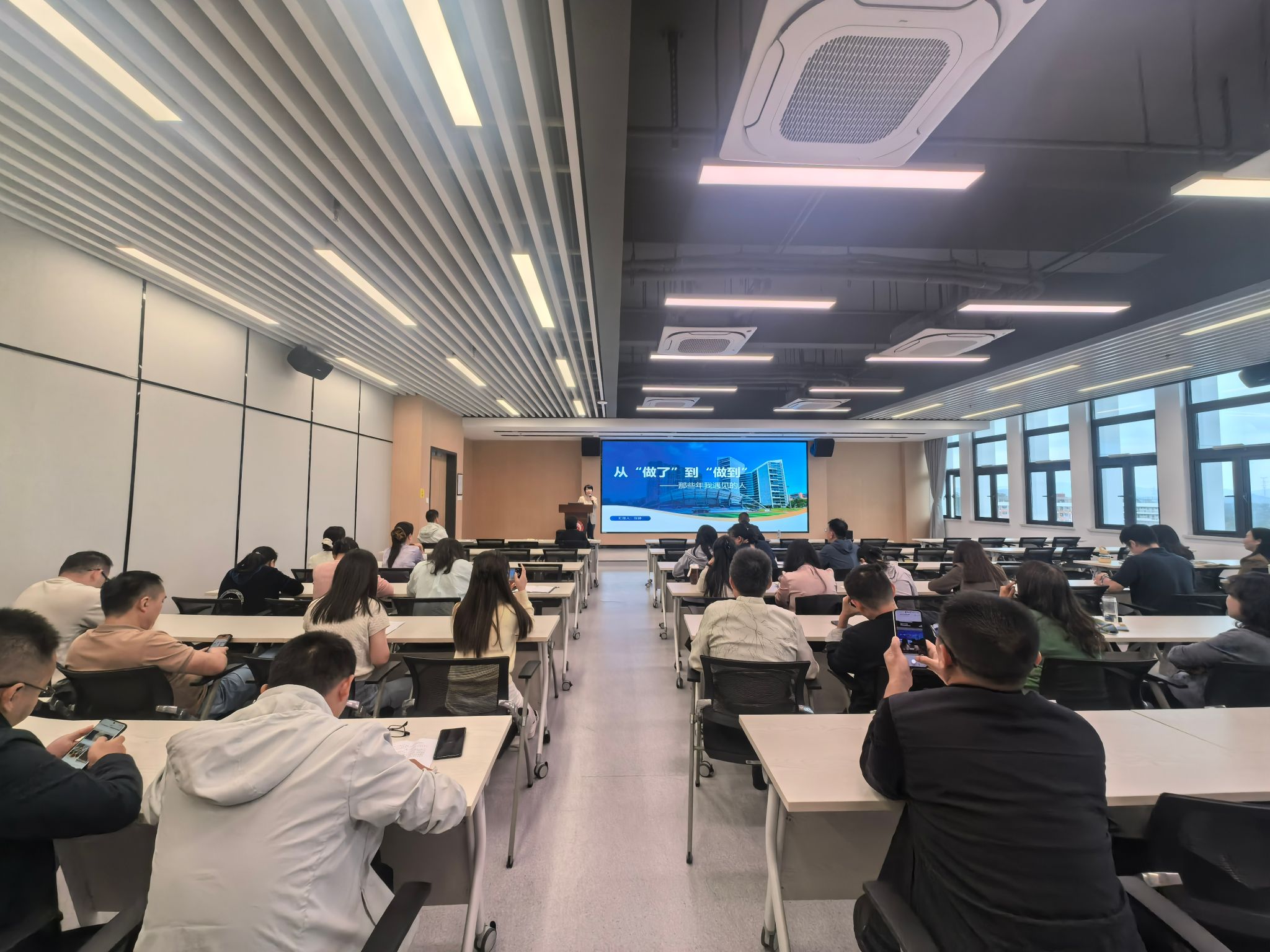 她首先通过生动案例阐明,“做到”不仅是执行,更是对结果的承诺,要求教师在工作中必须具备结果导向思维,确保每一项工作都落到实处、取得实效。面对高校教师多线程工作的常态,她分享了运用“四象限法则”进行时间管理的经验,倡导从“被动救火”转向“主动规划”,将精力聚焦于日常工作中“重要不紧急”的事务,实现个人与事业的协同发展。在谈及素养养成时,张婷老师强调,职业素养需要在日常细节中“有意识”地刻意练习,要以“超出预期”为标准,将职业规范内化为行动自觉。最后,她结合暑假许乃寒教师的项目申报经验,分享了运用系统化目标管理方法推进复杂任务的实践,即将大目标分解为清晰、有时限、可执行的具体步骤,这不仅是高效工作的方法,更是教师责任心与专业精神的体现。张婷老师的分享内容详实、贴近实际,贯穿着“长安何处在?只在马蹄下”的实干精神,引发了在场教师的深入思考。