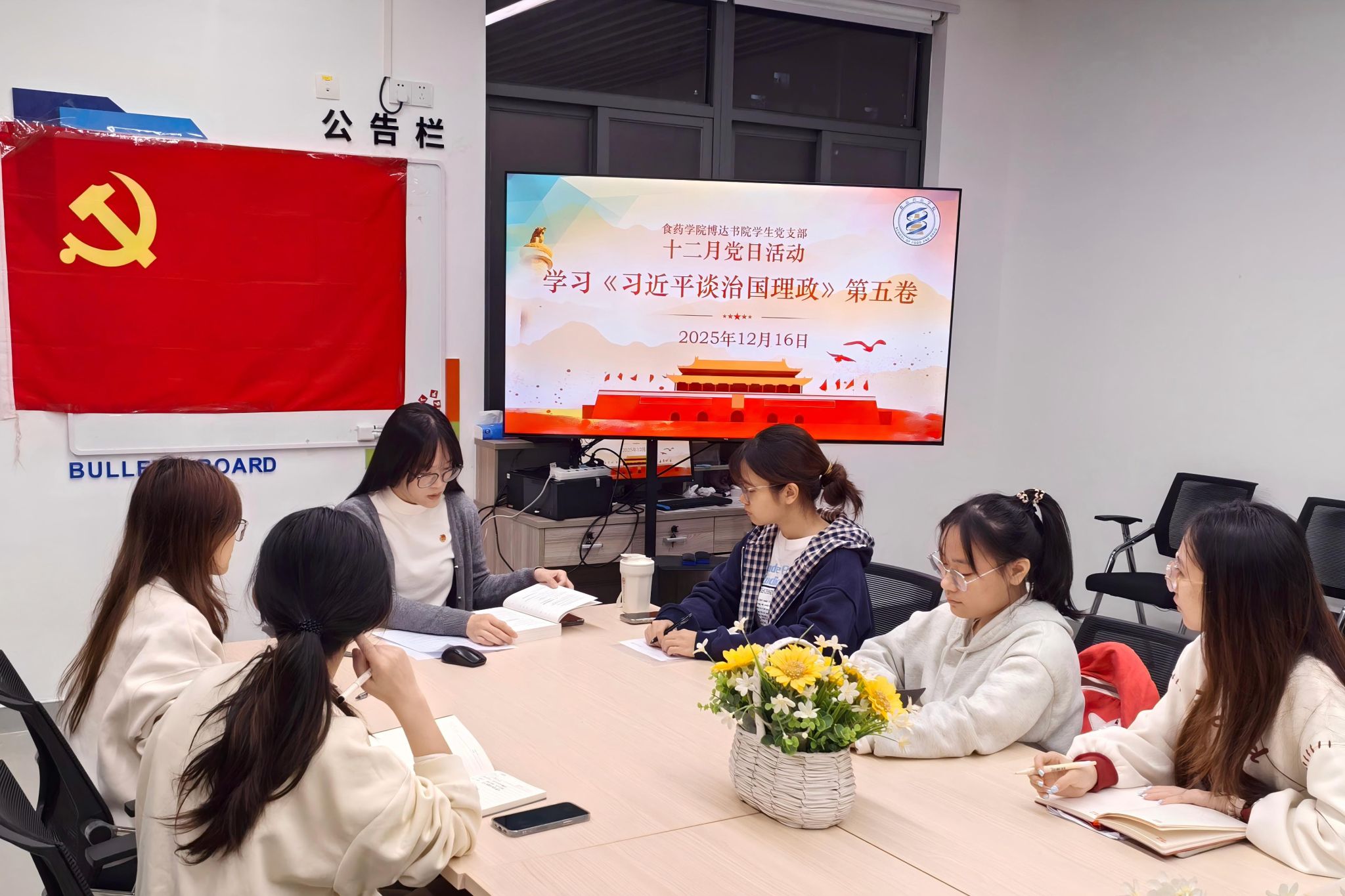 12月16日,食药学院博达书院学生党支部召开专题交流研讨会,围绕《习近平谈治国理政》第五卷内容展开系统学习与深入研讨。会议由支部书记康清越主持并领学,支部全体学生党员参与学习,结合自身实际交流心得,凝聚思想共识,强化使命担当。