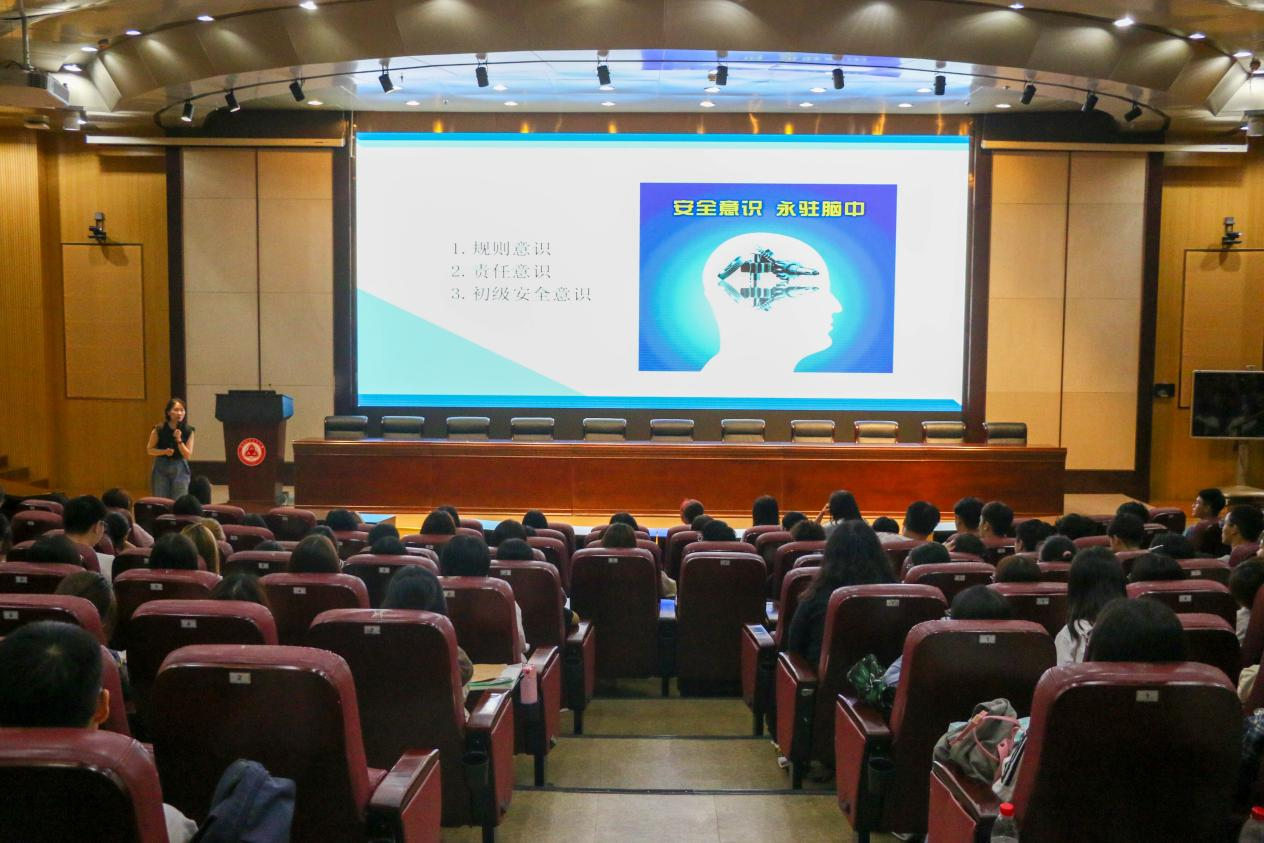 10月17日,为增强食品药品学院23级新生的安全意识,提高学生面对突发安全问题的处理能力,食药学院在留仙洞校区图书馆报告厅开展“做自己人生的第一责任人”专题讲座。在学校保卫处大力支持下,本次讲座有幸邀请到校保卫处肖燕老师主讲,食药学院23级新生逾500名同学参与本次讲座。